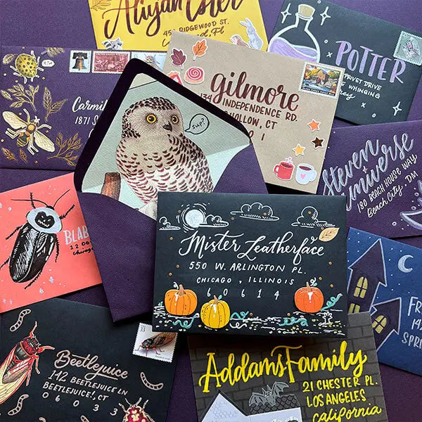 Cast a creative spell this October with Bewitching Envelopes, our annual challenge that's perfect for spooky season! Every day in October, participants will get a new daily prompt that can be used to create unique envelopes for letters, cards, or just because. Whether you're an artist or just looking for a creative outlet, this is a great craft to celebrate the season. You can send your creation to family, friends, or hang it up in your home! To bring your bewitched envelopes to life, we have everything you need from markers and stickers to a variety of colored envelopes. Make sure you tag us in your creations on social media, we'll be sharing some enchanting designs from the community on our accounts and on this page!