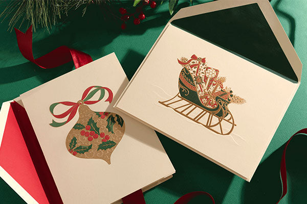 Explore handcrafted holiday cards that look and feel luxurious. Choose from select styles or bring your unique vision to life by ordering through one of our stationery experts. Book your free appointment today!