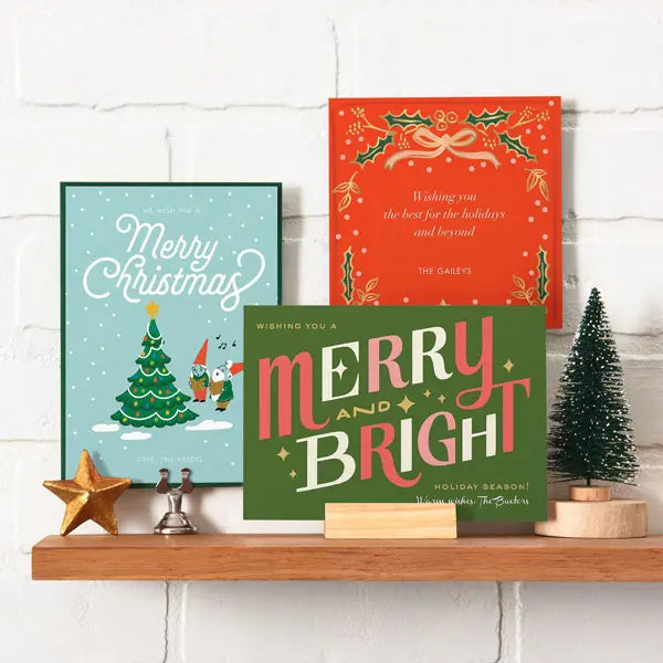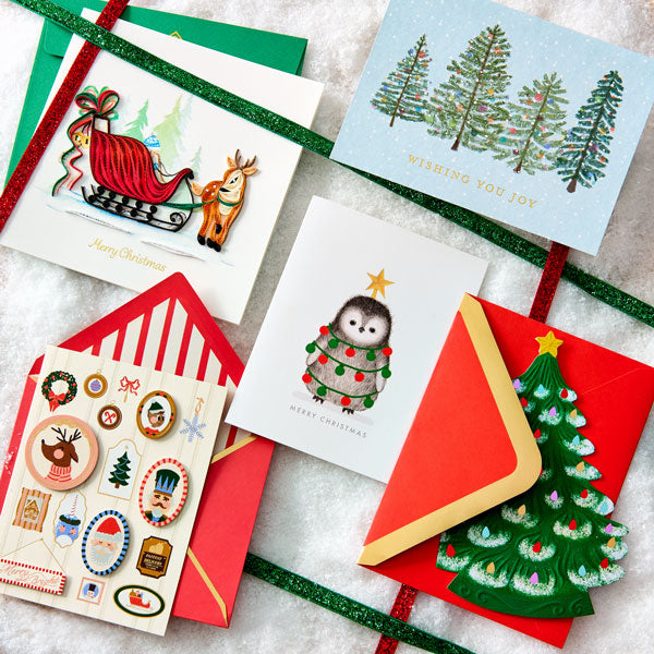 From family photo cards to postcards or greeting cards, there are a variety of holiday cards to choose from and send out this season. Whether you choose one of our expertly designed cards or create your own custom design, you can't go wrong with a holiday card from Paper Source. You can even have your envelopes addressed for you to give your holiday greetings a professional or put-together look. In addition to Paper Source designed cards, we carry designers such as Rifle Paper Co, Mr. Boddington's Studio, or Paperless Post for digital mail. Browse cute, funny, religious, or sentimental holiday cards for every occasion from Christmas and Hanukkah to New Years. Our unique assortment of cards ensures that your recipients will be surprised and delighted by your holiday greetings.