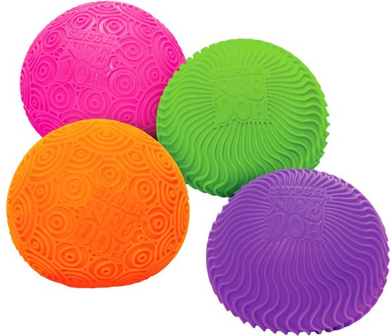 The groovy gratifying super soft, super stretchy dough like glob NeeDoh is now available with even more tantalizing tactile delight in a super size. Super NeeDoh Ripples still has all the irresistible power to find your best mellow and chill and always returns to its 4.25" super-size dough filled glob, but now experience waves and ripples as you stretch and smush! One squeeze turns into many for a soothing sensory sensation at home, school, in the office, car, or anywhere. Available in four assorted colors and two assorted textures.